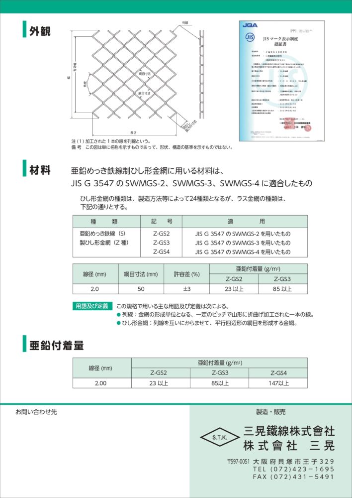 ひし型金網(日本産業規格認証取得工場) ※認証番号 JQ0519008